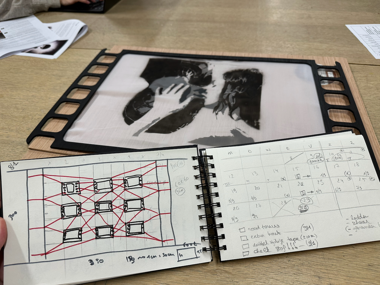 Helemaal in het begin, had ik een idee om 9 iconische film-vonk-beelden te verwerken in één werk. Naar dat initiële ben ik terug gegaan, inclusief de film-frames en de rode draad (ook inclusief een strak plan om alles op tijd klaar te krijgen):